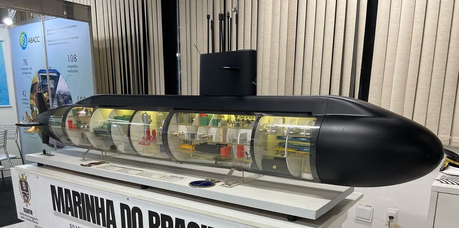 Oculto en la belleza natural de la Bahía de Sepetiba en el estado Río de Janeiro, el complejo naval de Itaguaí trabaja sin descanso en el Álvaro Alberto (SN-BR). Este primer submarino atómico brasileño es el proyecto de defensa más ambicioso del país, transformando así la idílica franja de la Costa Verde carioca en la cuna de la disuasión nuclear del Atlántico Sur. El otro núcleo fundamental del proyecto, que trabaja en el diseño y fabricación del reactor (RMB), está localizado en Aramar, estado de São Paulo.