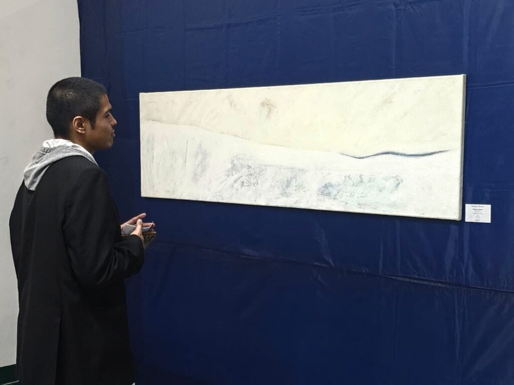 2. El Diario Visual: Una selección de obras pictóricas de mediano y gran formato realizadas en su taller de Buenos Aires, basadas en los estudios previos. Estas piezas, que van desde el realismo hasta la abstracción expresionista, exploran la gama cromática del blanco y los efectos de la luz polar.